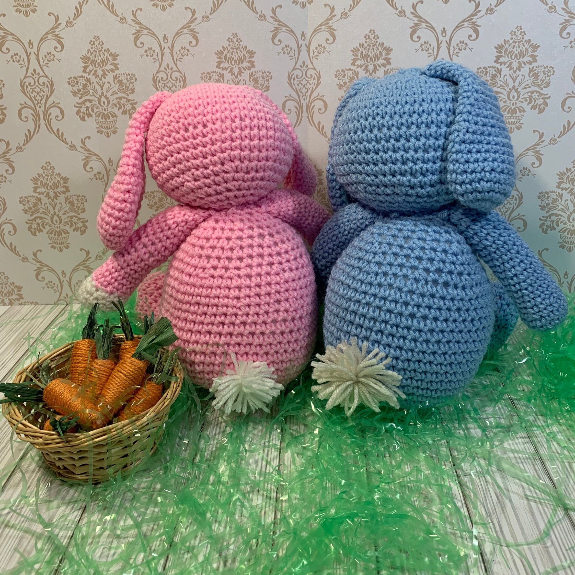 Crochet plush rabbits just in time for Easter! Each bunny is unique and have varied features. Each plush sits at approximately 12in tall and 9in wide. * Item is made to order and typically takes 2 days to complete.*